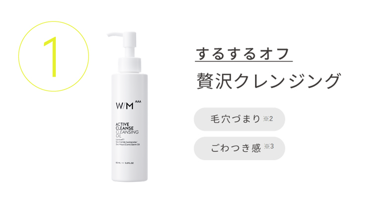トウモロコシ胚芽油※1を中心とした濃厚でリッチなテクスチャーのオイルがメイクと素早く馴染み、さっぱりと洗いながらも肌に潤いを残してしっとり仕上げます。