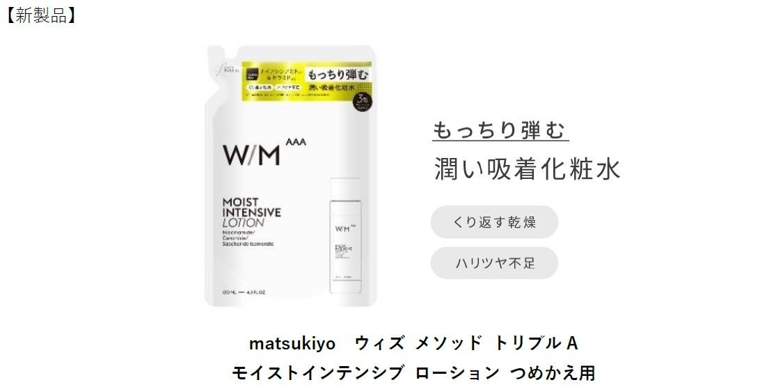 マツキヨココカラカンパニーで高い人気を誇るプライベートブランド「matsukiyo W/M AAA」からつめかえ用ローションが登場