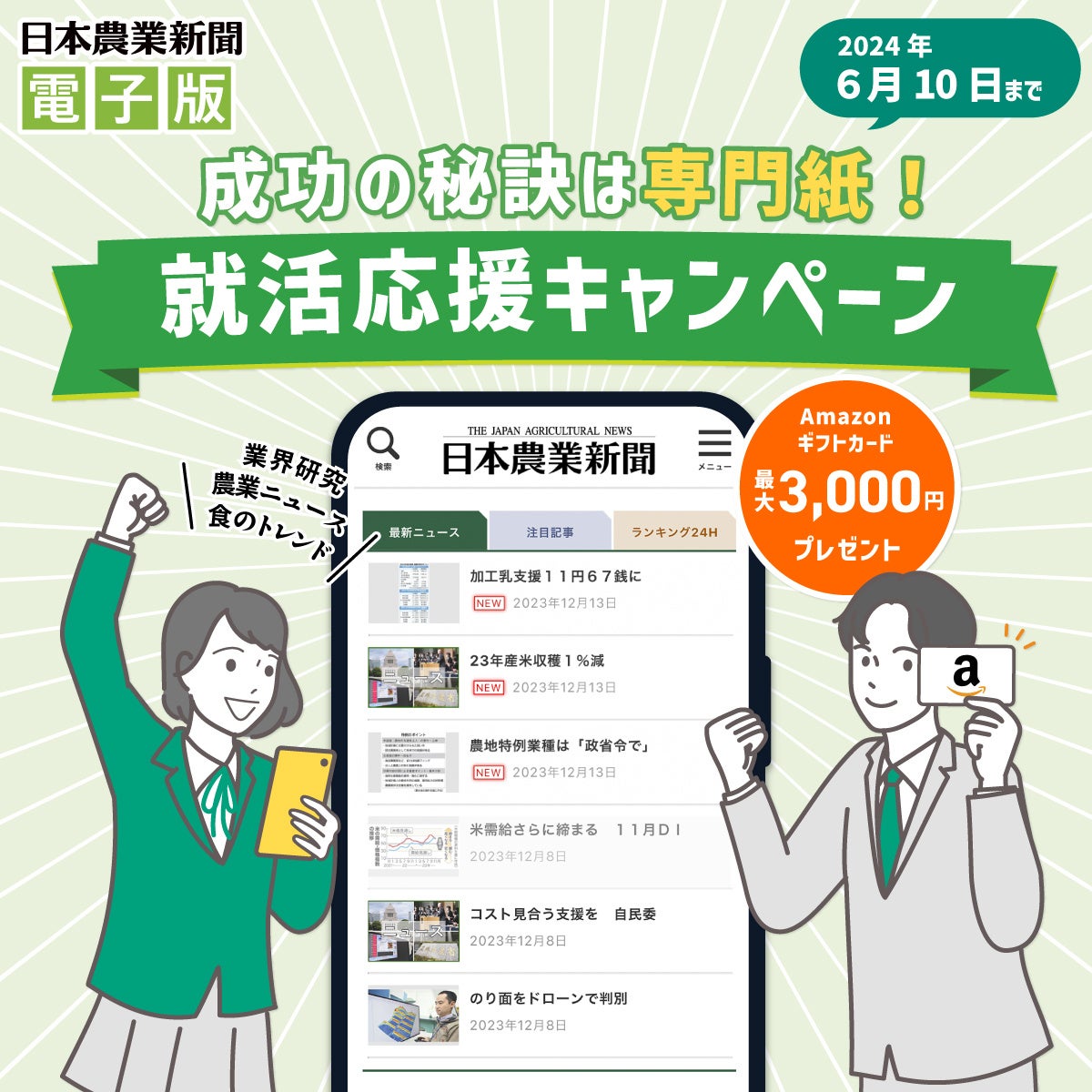 日本農業新聞電子版 就活応援キャンペーン