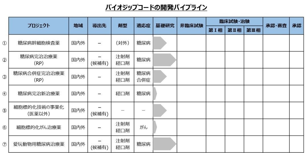 株式会社バイオジップコードで取り組んでおります新薬開発プロジェクトの一覧として、「パイプライン」を策定いたしましたので、下記のとおり、ご報告させて頂きます。