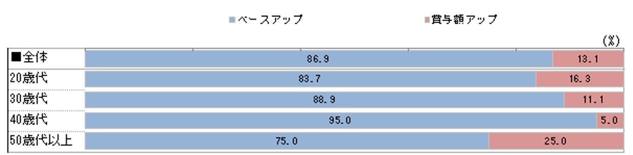 全体の8割~9割が「賞与額アップ」より安定的な「ベースアップ」を希望