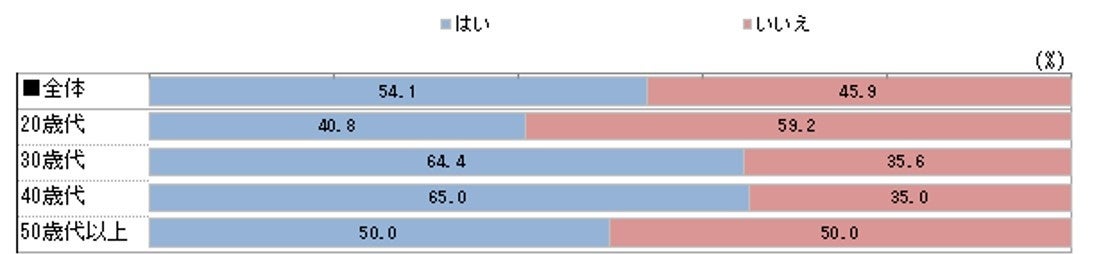 【年代]20代:42.4%/30代:31.1%/40代:17.2%/50代以上: 9.3%