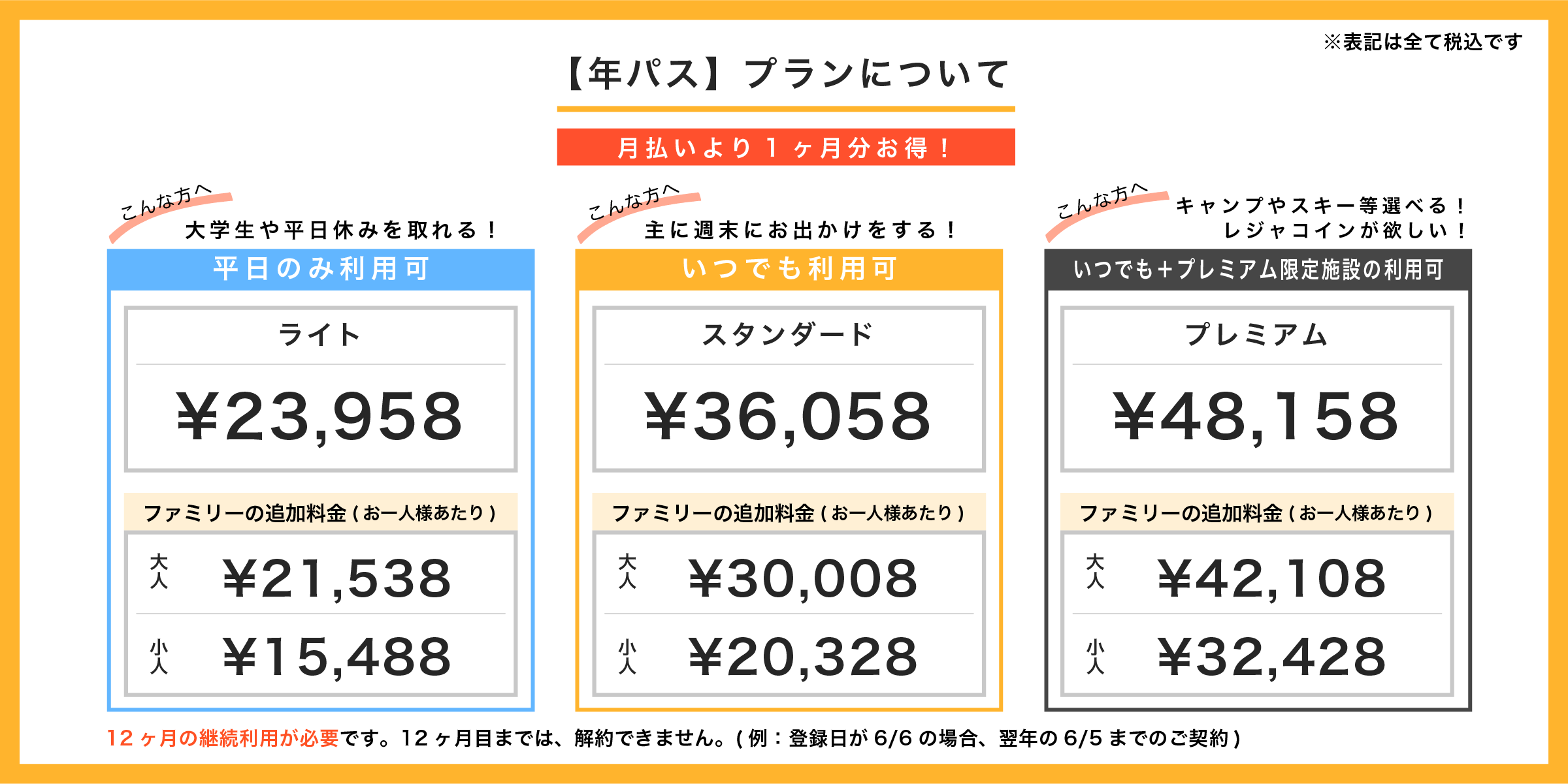※大人:18歳以上/ファミリー会員大人:13歳以上/ファミリー会員小人:12歳以下