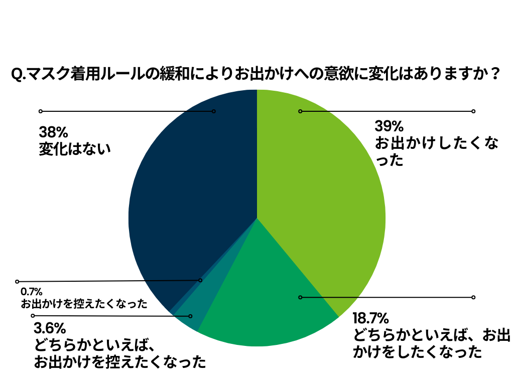 マスク着用ルールが緩和により、約6割の方がお出かけへの意欲高まる