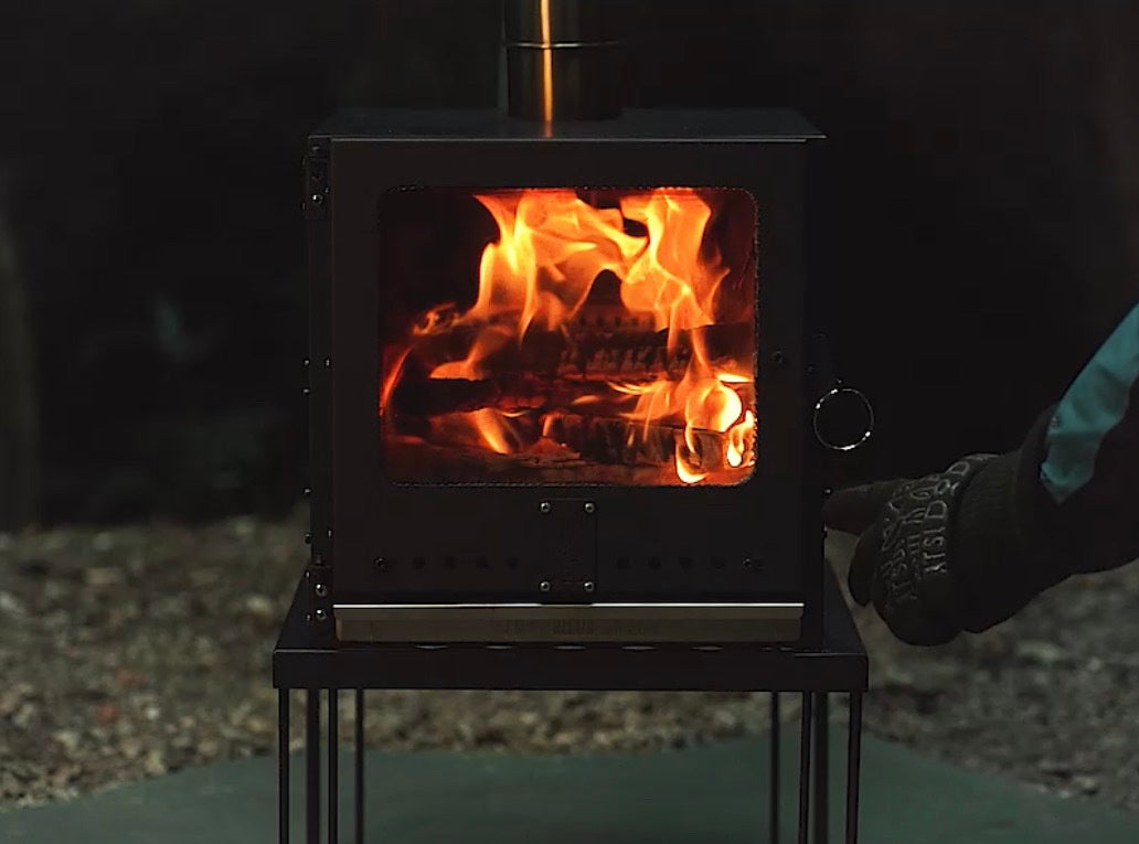 キャンプで薪ストーブの炎に見とれていて夕食の準備が進まない経験から調理もできる薪ストーブを開発しました。