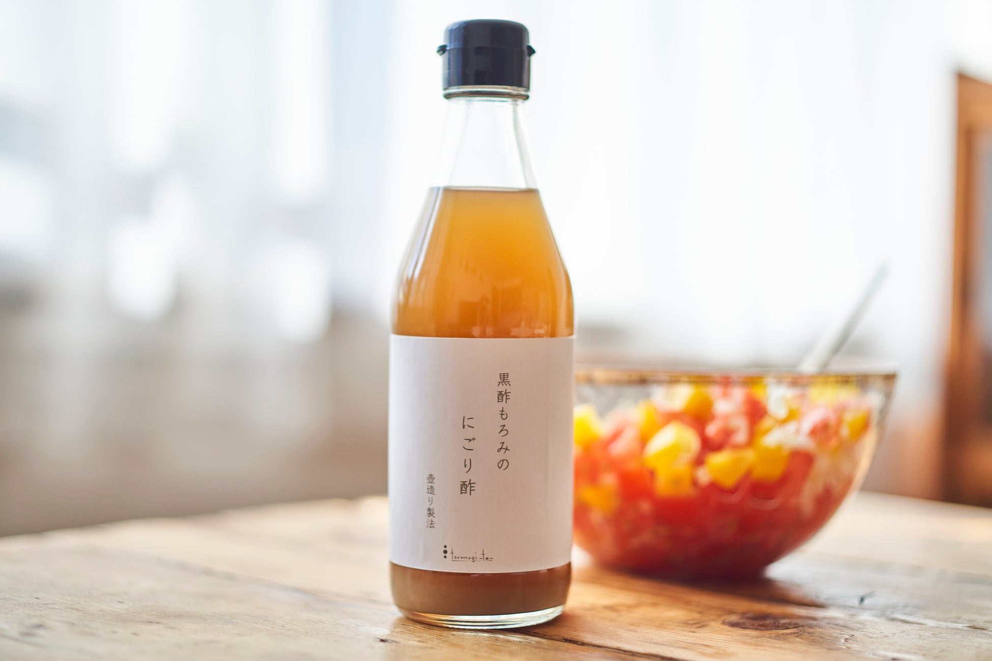濁りこそが魅力。通常は濾過される”もろみ”をそのまま残した、透明じゃないお酢”黒酢もろみのにごり酢”が江戸時代後期創業「坂元醸造」と料理家「榎本美沙」のタイアップにより商品化。