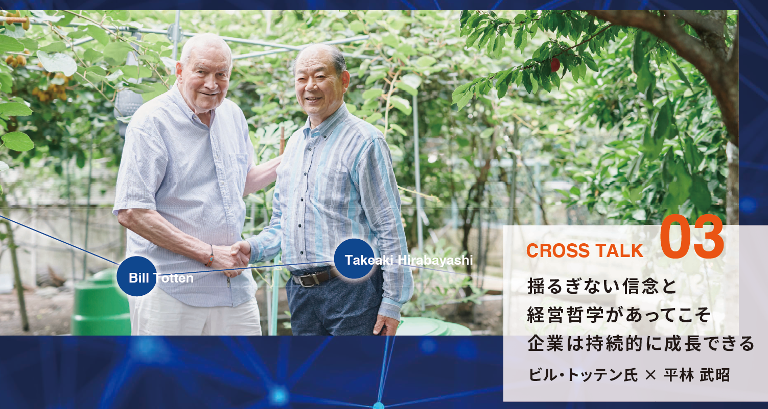 今回の対談では、トッテン氏のご自宅へご招待いただき、会社創立当時の苦悩話、会社のターニングポイント、会社を存続させる秘訣など、仕事が生きがいである両者の想いが詰まった内容になっております。