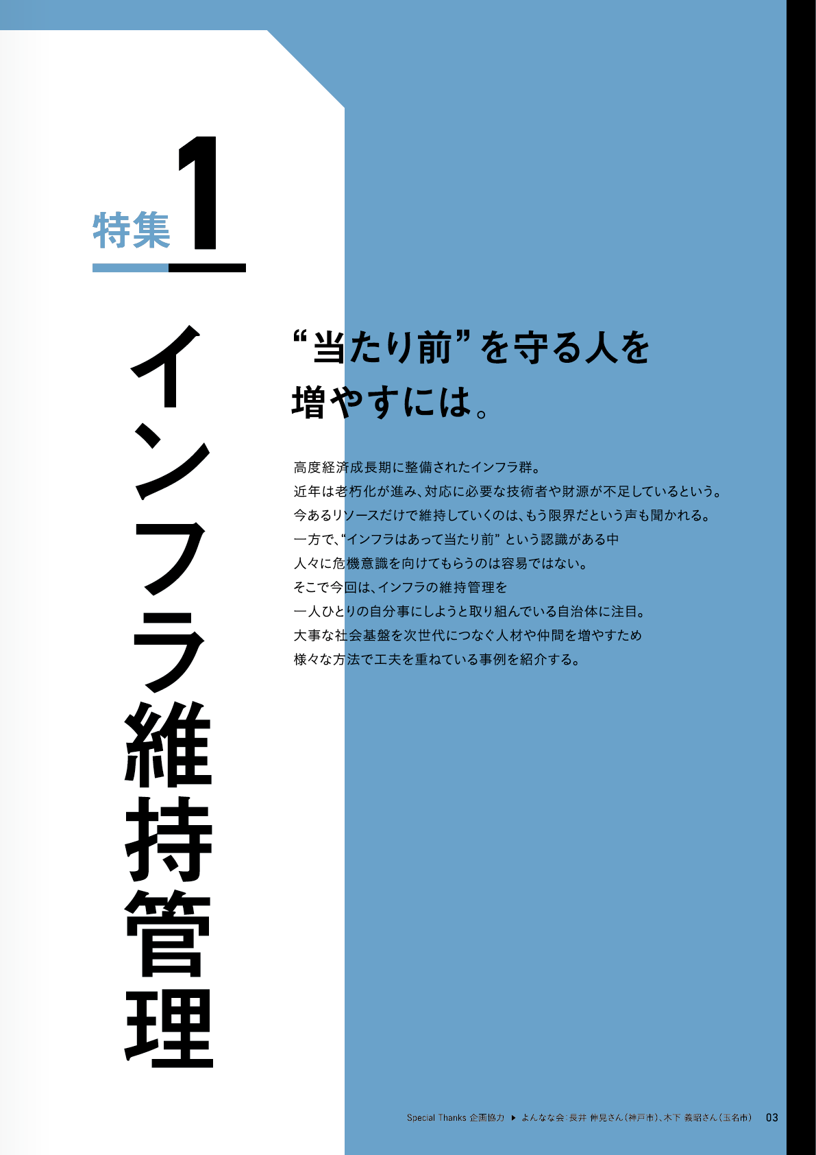 今号の特集は、“インフラ維持管理”と“自治会支援” 。