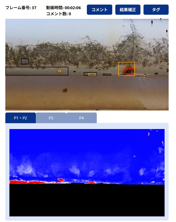 ドローンで撮像された画像をシステムにアップロードすることにより、AIが錆や腐食のある箇所の検知及び異常度(腐食度)を4段階で分類。早期に改善が必要かどうかを明らかにする。