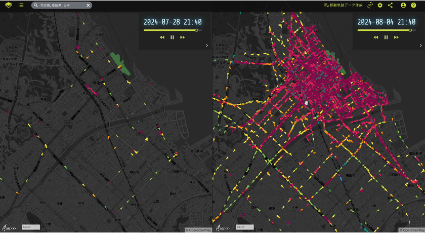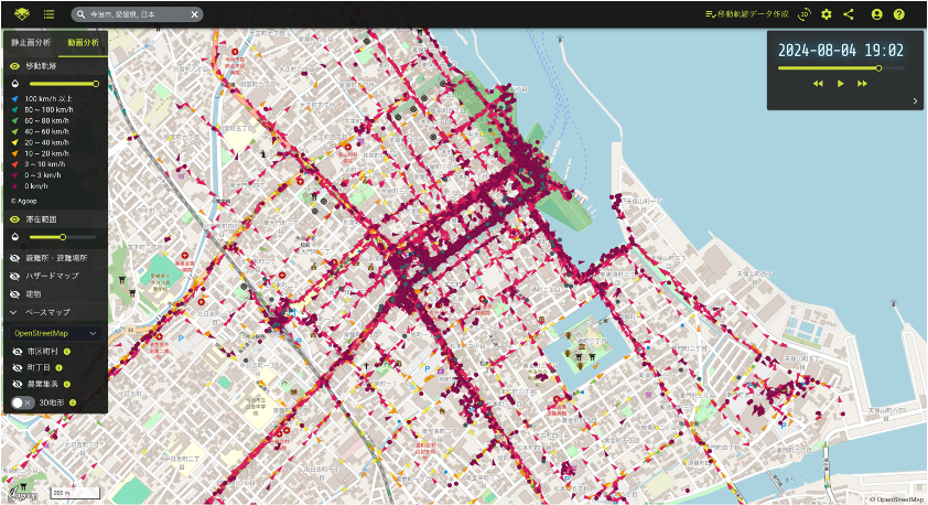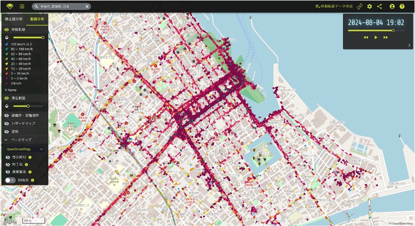 ・移動速度や移動手段(徒歩・自転車・自動車など)別の可視化により、人の動きを多角的に捉えることができます。