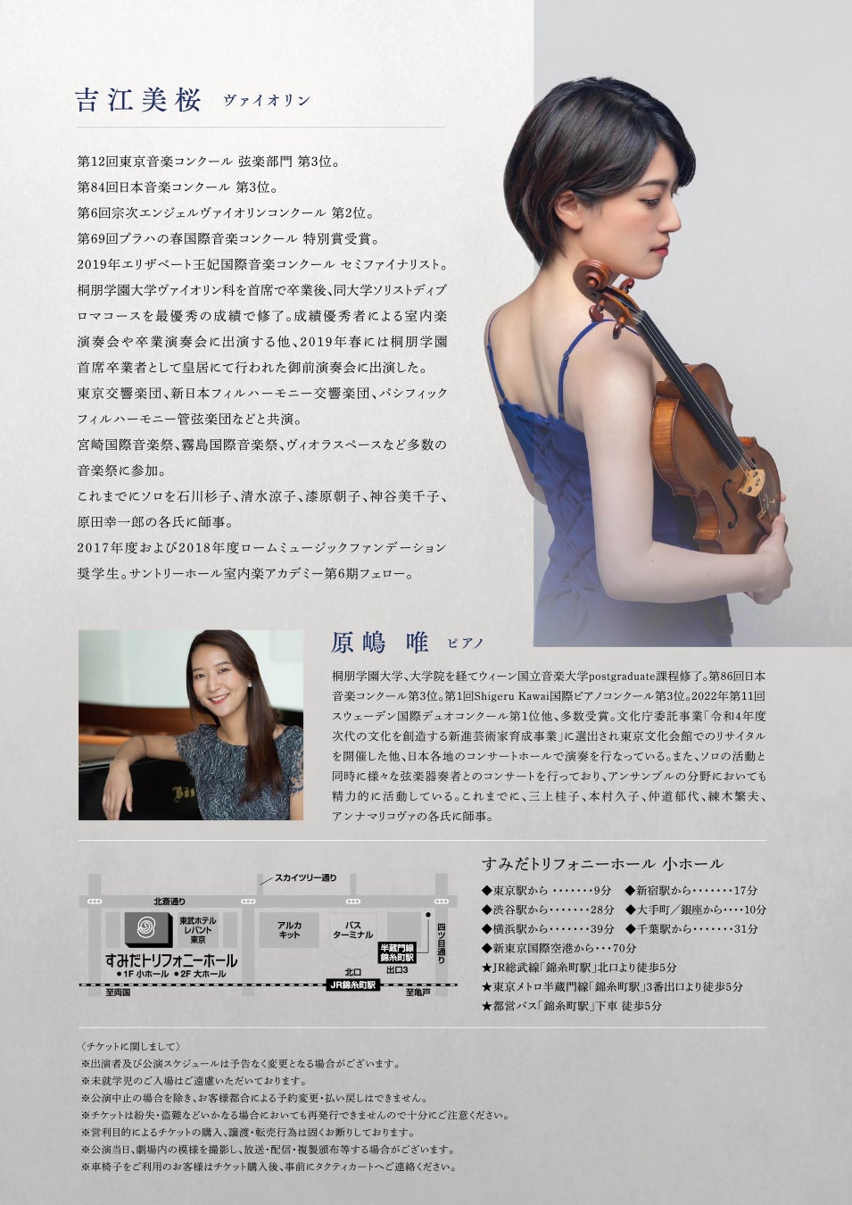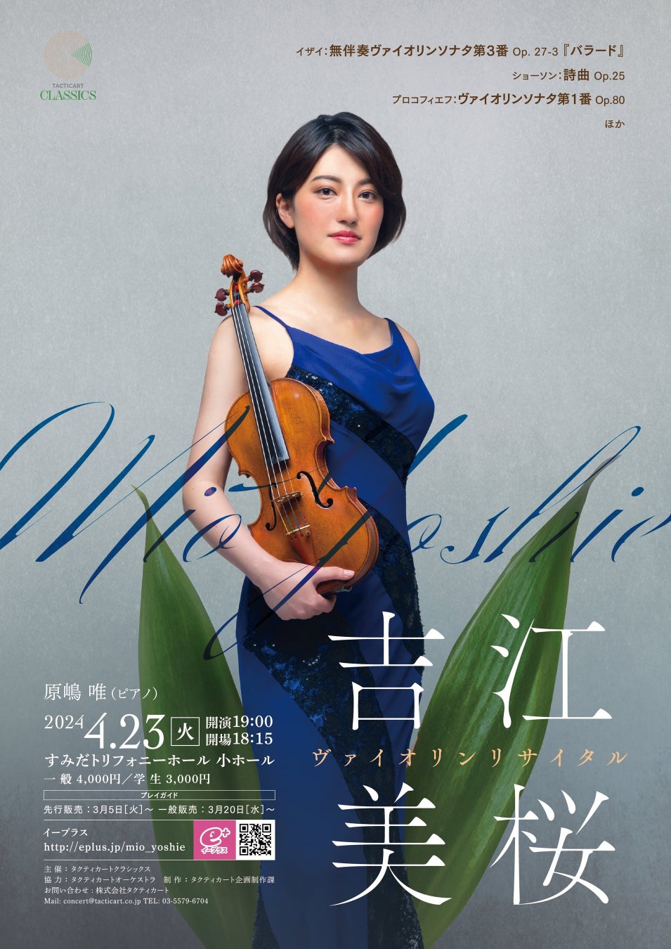 2024年4月23日、『吉江美桜 ヴァイオリンリサイタル』がすみだトリフォニーホール 小ホールで開催される。