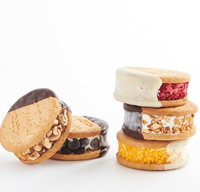 子供の頃によく食べたビスケットアイスをミラノ風に洗練させたスイーツ。ジェラートをより多くの方に気軽に楽しんでいただきたいという創業者フランコの想いから2011年に生まれました。イギリス製の全粒粉クッキーはさっぱりしたミルクフレーバーのジェラートを、塩味の効いたビスケットにはピスタチオフレーバーなど5種類のジェラートに合わせてビスケット、クッキーに挟んでいます。サンドされたジェラートの廻りにチョコレートやナッツなどトッピングをプラスすることで食感と見た目の楽しさを実現しました。