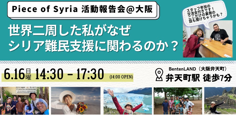 【Piece of Syria活動報告会】世界2周した私がなぜシリア難民支援に関わるのか?を6/16に開催