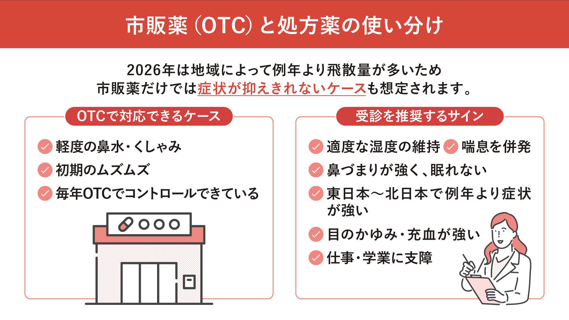 2026年は地域によって例年より飛散量が多いため、市販薬だけでは症状が抑えきれないケースも想定されます。