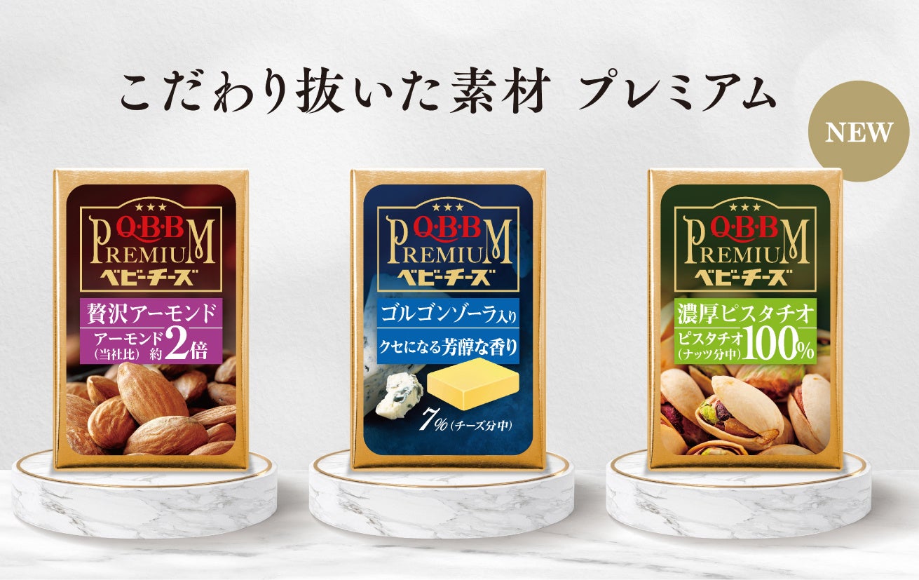 ワンランク上のベビーチーズとして発売された「プレミアムベビーチーズ」シリーズは、素材の風味や食感にこだわった自分へのご褒美としてお楽しみいただけます。