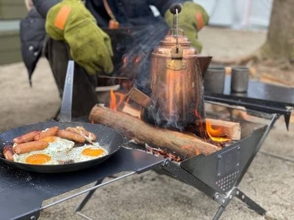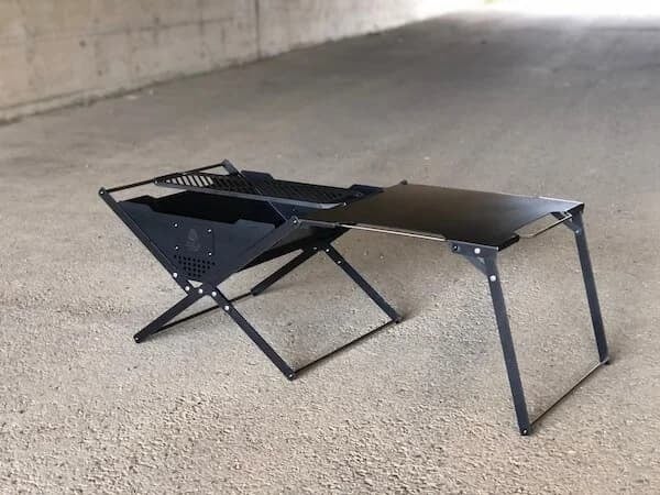 機能性もバツグンで、3ステップの組み立てで片付けも簡単な折りたたみ式。ゴトクとサイドテーブルは、どちらも焚き火台の持ち手部分に連結し、フラットになる構造で重たいダッチオーブンなども横にずらすだけで火から下ろすことができます。