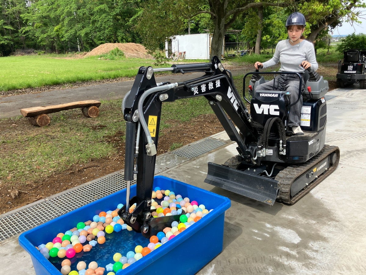 ショベルカーを使ってボールすくいに挑戦!上手にすくえたら、ボールをプレゼント!