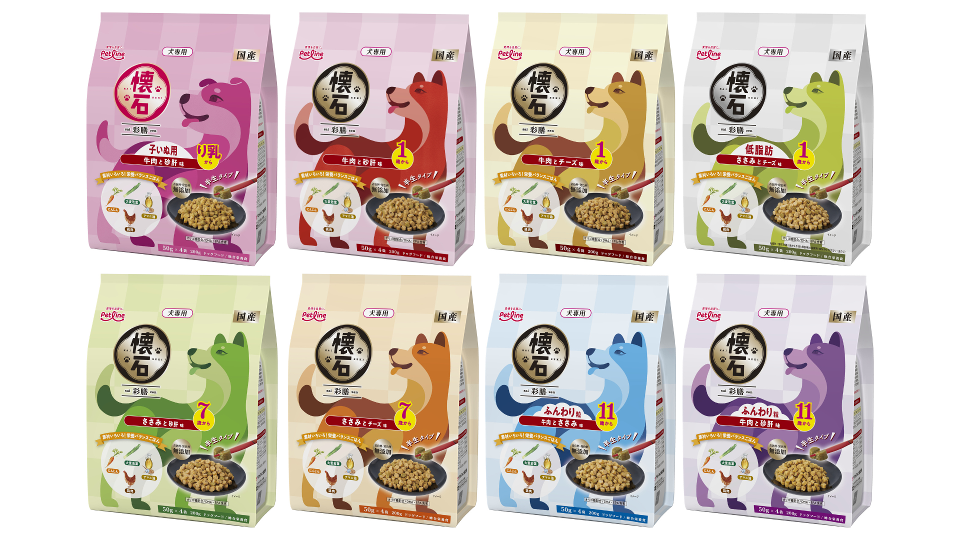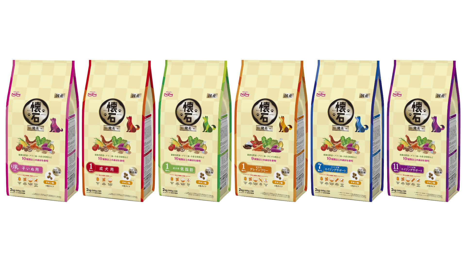 国産ペットフードメーカーのペットライン株式会社(本社 神奈川県横浜市/代表取締役社長 小沼 亮)は、2026年3月2日(月)にドッグフードブランドとして新しく、オメガ3脂肪酸が豊富なアマニ油、食物繊維が豊富な小麦全粒粉など、9~10種類以上のこだわり素材をひと粒にギュッと閉じ込めた「懐石 健美(けんび)」および国産鶏肉を使用したしっとり食感の半生ごはんで愛犬の健康に配慮し、機能性原料も配合した「懐石 彩膳(さいぜん)」を発売します。