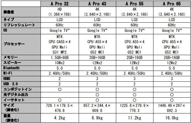 ・発売日:10月27日(金)以降順次発売※(65インチは2023年11月以降発売)