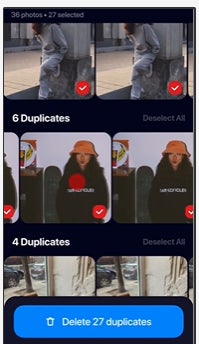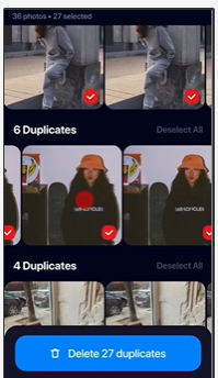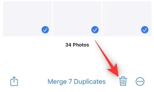 Step4:削除する重複写真を選択し、「ゴミ箱」アイコンをタップします。