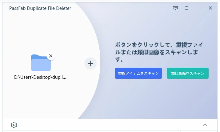 Step2:PassFab Duplicate FileDeleterを起動後、同画面をクリックして重複写真を削除するフォルダを追加します。