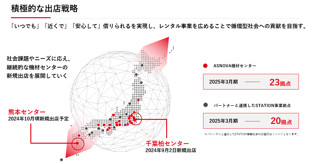 (パートナーと連携した足場レンタルサービス「ASNOVA STATION」を含めると全国43拠点を計画。)