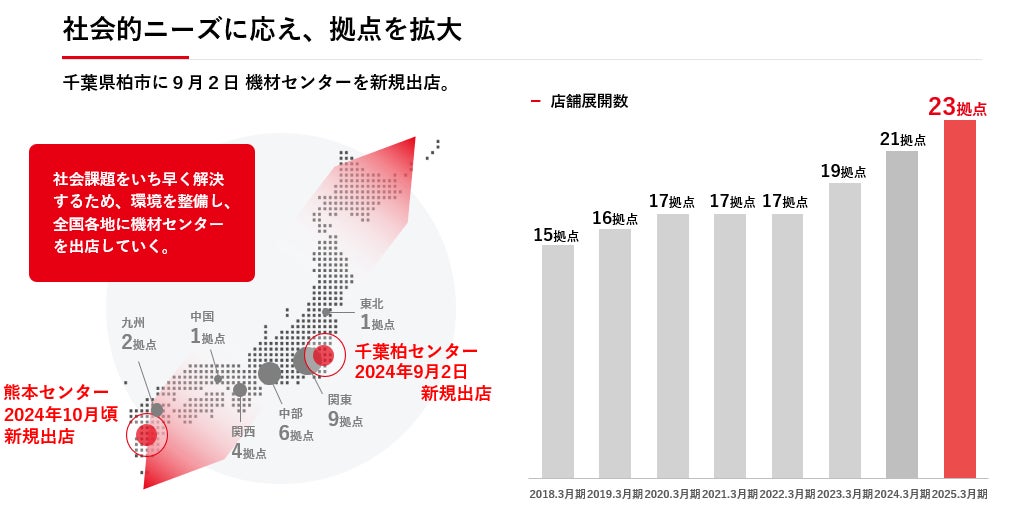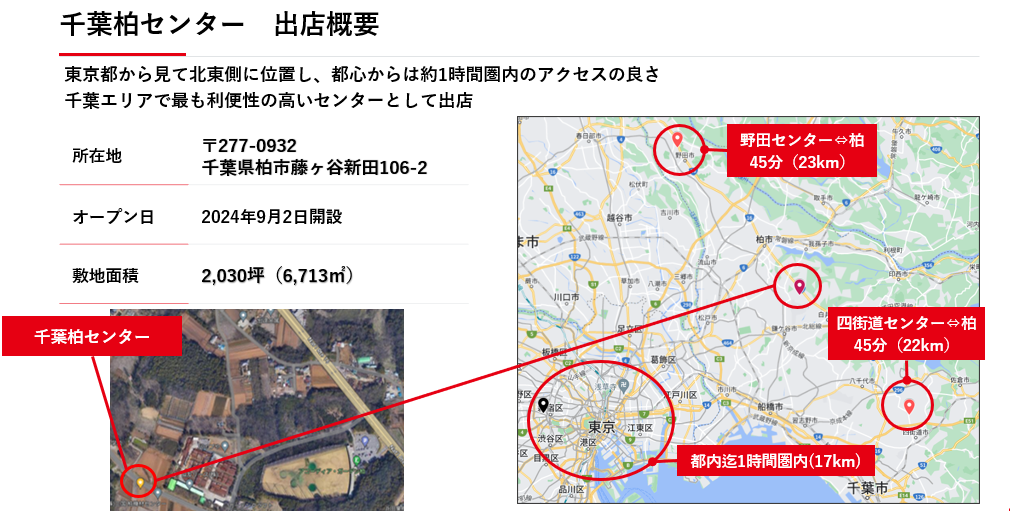 そして、このたび22拠点目となる千葉柏センターを9月2日に新規出店することとなりました。