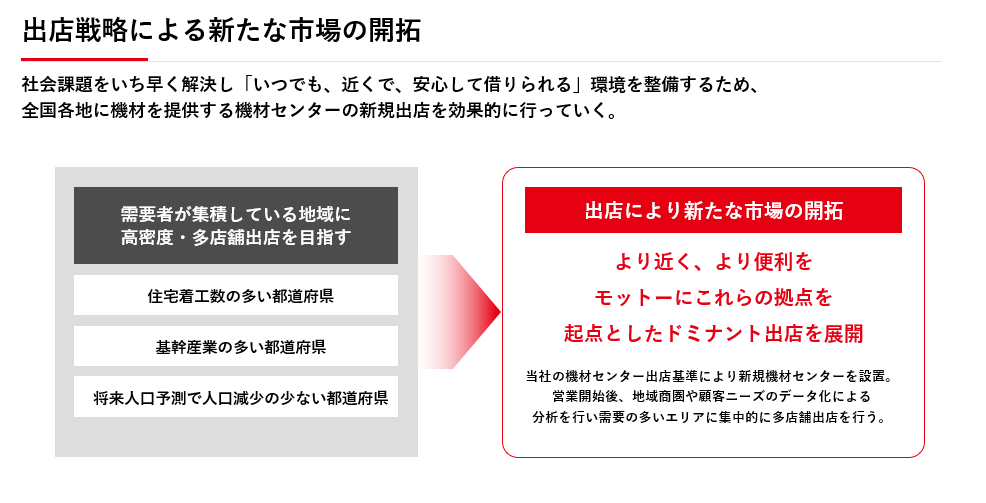 当社は直営機材センターの新規出店時、以下3点を立地の基準としております。
