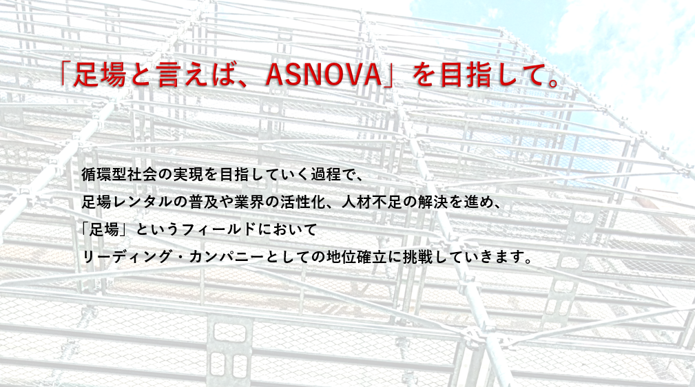 今後も「足場と言えば、ASNOVA」を目指しながら、当社、ASNOVAだからやる価値があり、ASNOVAしか出来ないものを世の中に提供し、また「どのような価値を生み出していけるか」、「持続可能な会社の成長をどう創り出していけるか」ということに挑戦し続けていきたいと考えております。