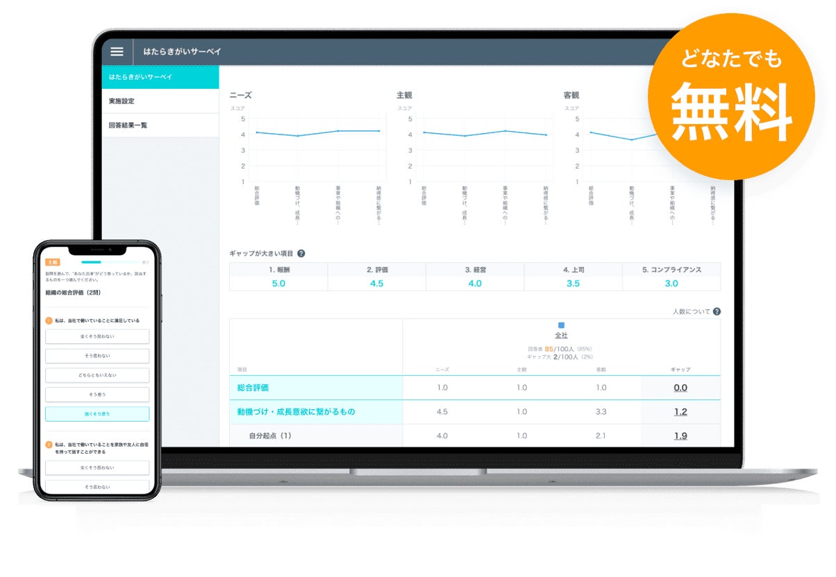 この「はたらきがいサーベイ」は無償で提供され、中小企業をはじめとする調査のために割ける費用や人材が不足している企業様や、調査ノウハウが不足している企業様にも導入いただきやすくなっており、はたらく人一人ひとりを大切にする企業に価値を提供することができます。