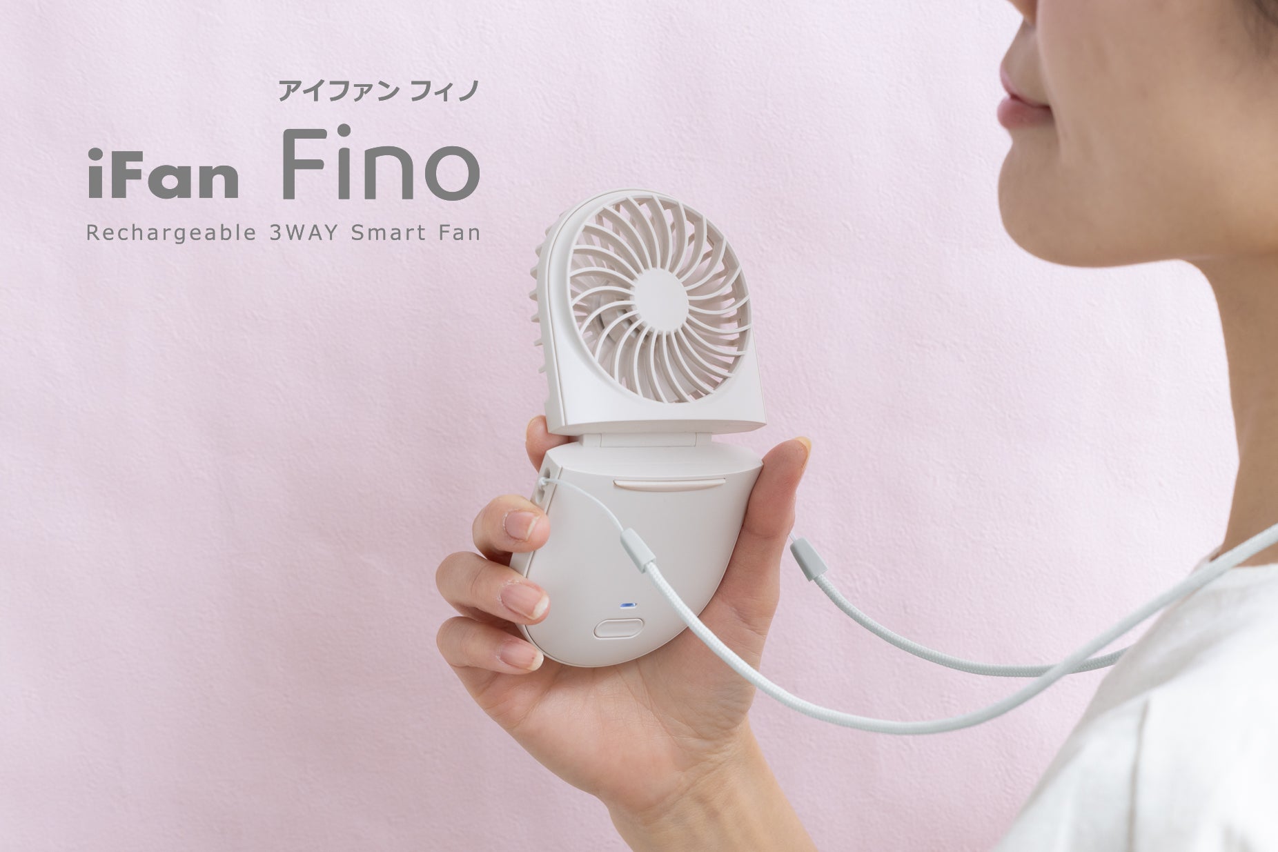 軽やかに、ひんやりスマート!首に掛けても、デスクで使っても、持ち運びにもぴったりな3WAY仕様の薄型ハンディファン「iFan Fino(アイファン フィノ)」が新発売