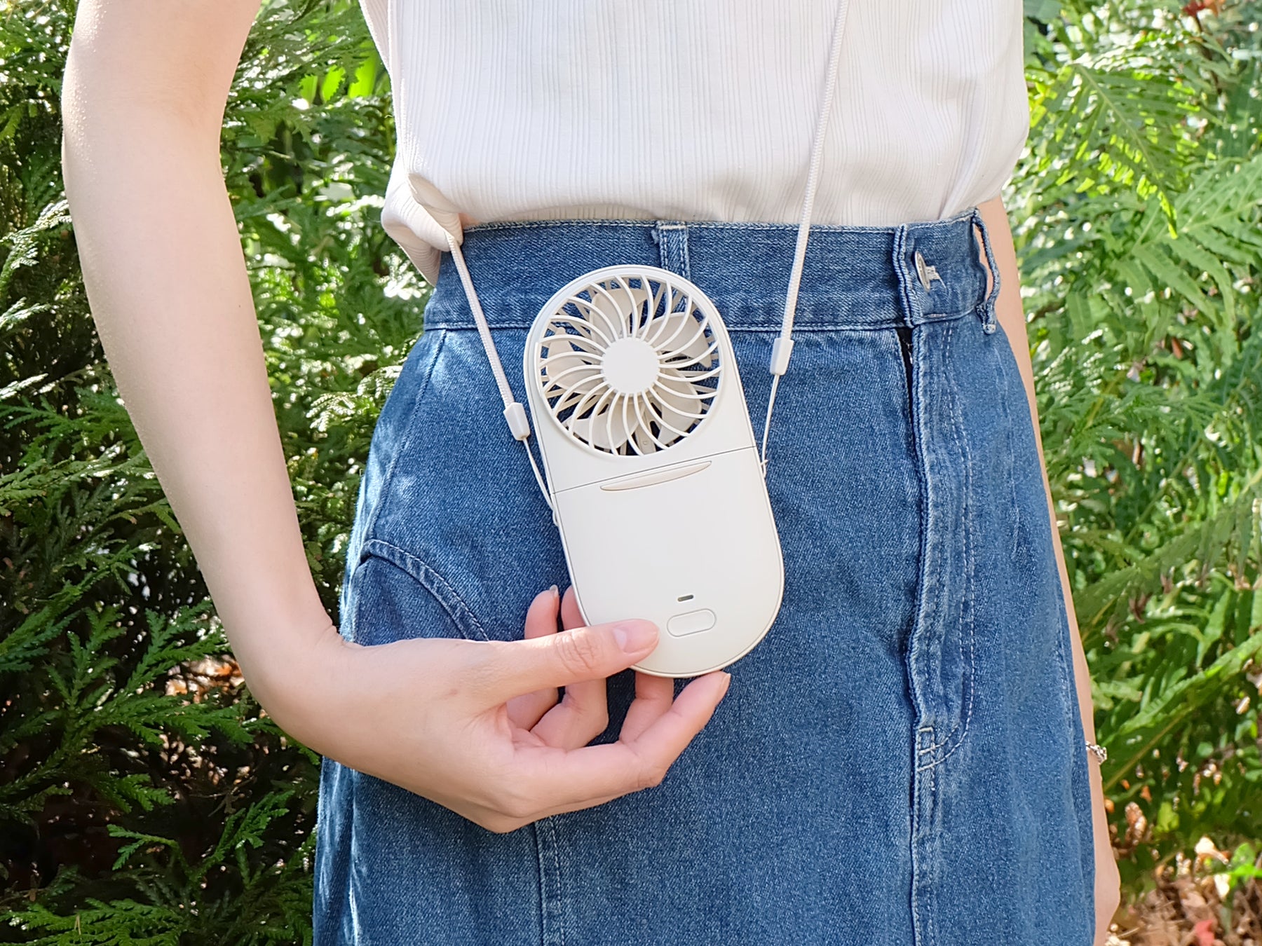 「iFan Fino(アイファン フィノ)」を発売いたします。デスクでも、お出かけでも、首から下げてもOK。約87gの軽さと手のひらサイズのコンパクト設計で、夏のお出かけや通勤・作業中にもぴったりの新定番アイテムです。薄型ながらも3段階の風量調整とパワフルな送風を実現。スタイルと実用性を両立させた、1台3役ファンです。