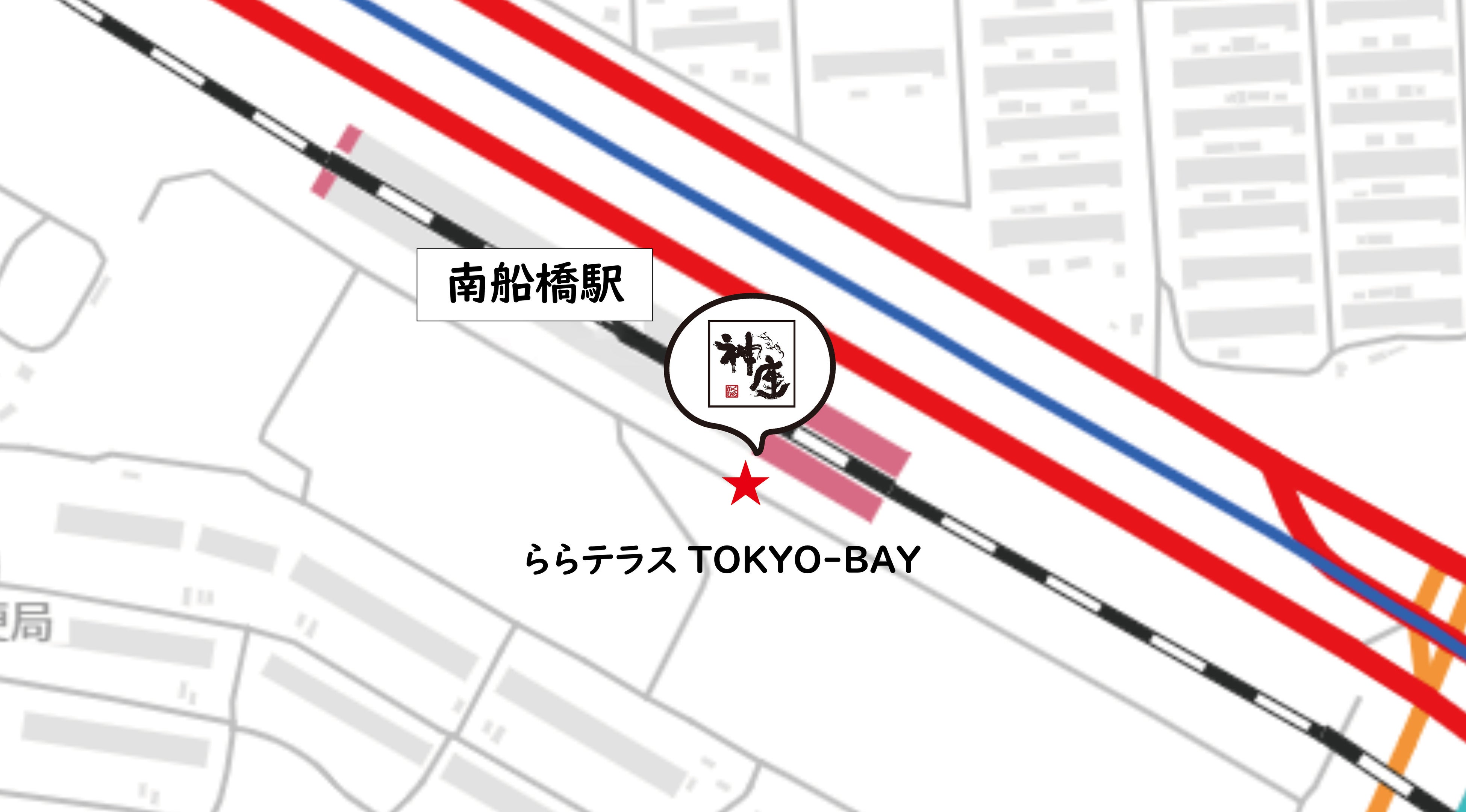 今回オープンするどうとんぼり神座 ららテラスTOKYO-BAY店は、JR京葉線・武蔵野線 南船橋駅から徒歩2分のライフスタイル型商業施設「ららテラスTOKYO-BAY」(千葉県船橋市若松2-2-1)のフードコート内にオープンします。