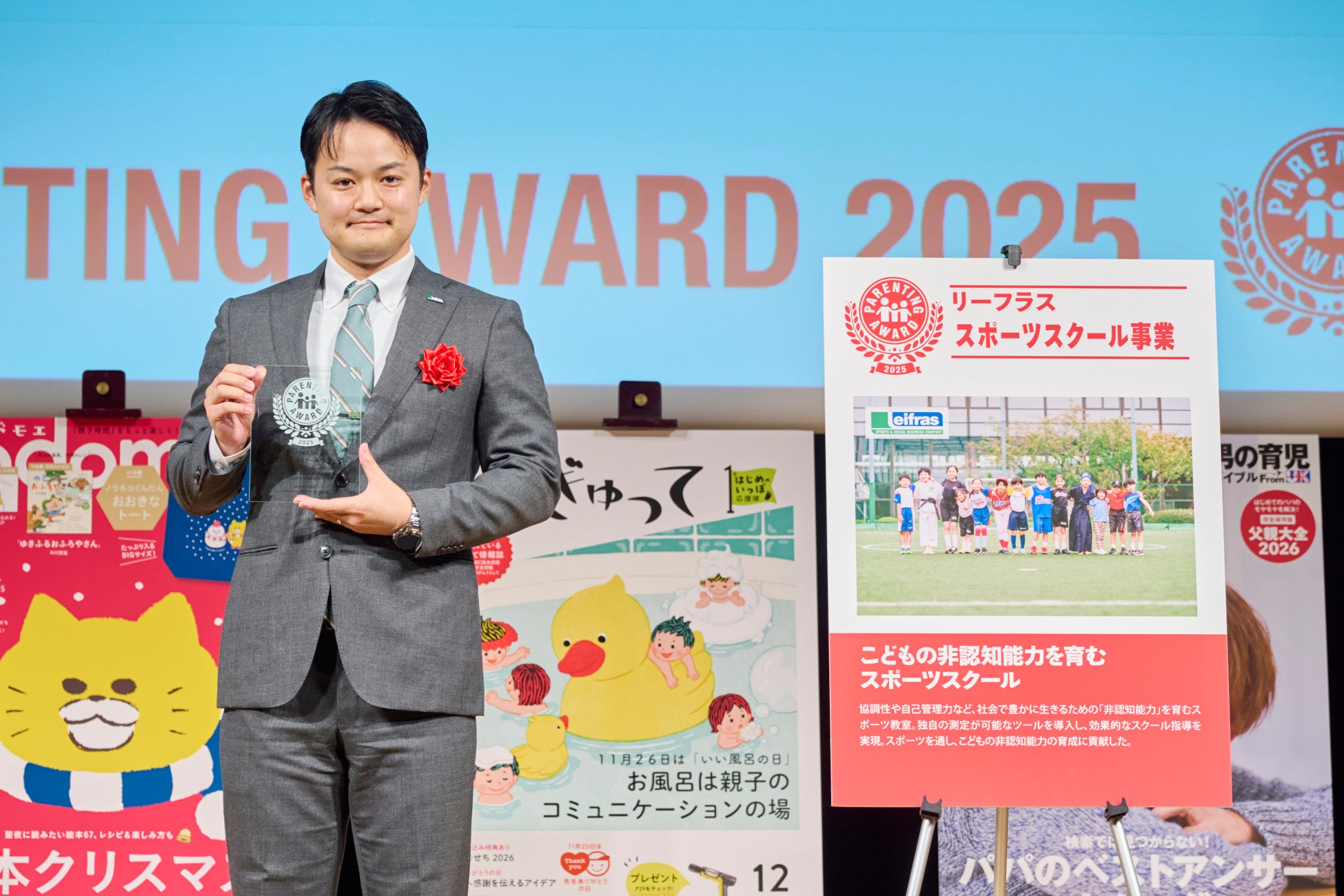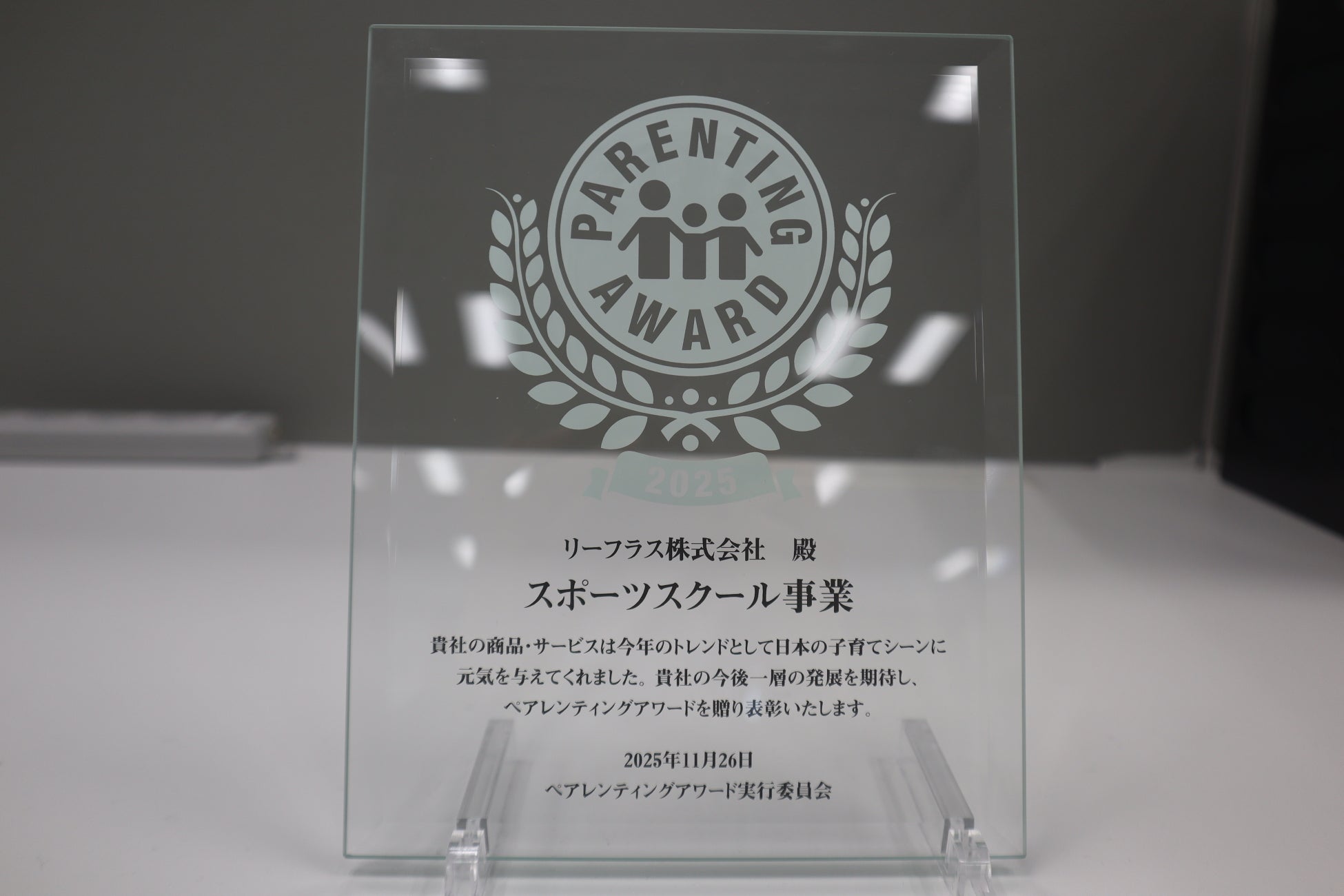 子ども向けスポーツスクール事業や部活動支援事業などを展開するリーフラス株式会社(Leifras Co., Ltd.、Nasdaq:LFS、本社:東京都渋谷区、代表取締役:伊藤 清隆)は、このたび「第18回 ペアレンティングアワード」モノ・サービス部門を受賞し、11月26日(水)に行われた授賞式に出席いたしました。