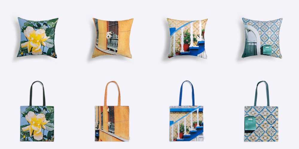 ロンドンやマドリードのどこか懐かしい雰囲気が残るノスタルジックな日常をおさめた、厳選4作品12アイテムを春のインテリアやおでかけに使えるクッションとフラットサブバッグにデザインしました。