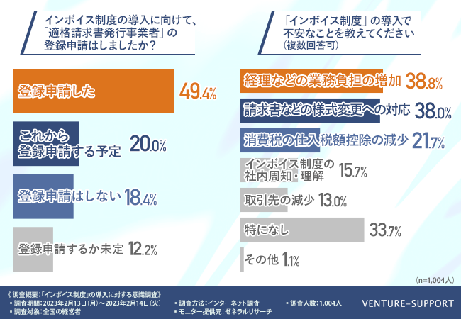 - 【まとめ】経営者の2人に1人が、インボイス制度「適格請求書発行事業者」の登録申請をしたと回答