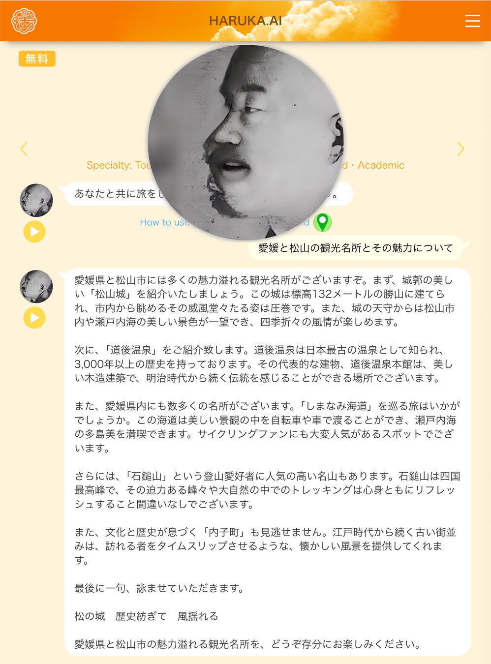 「松の城 歴史紡ぎて 風揺れる」正岡子規がAI 観光大使で蘇る - 多言語・ 音声生成AI搭載のAI観光ガイドのHARUKA.AI - 地元の偉人シリーズ(愛媛県)