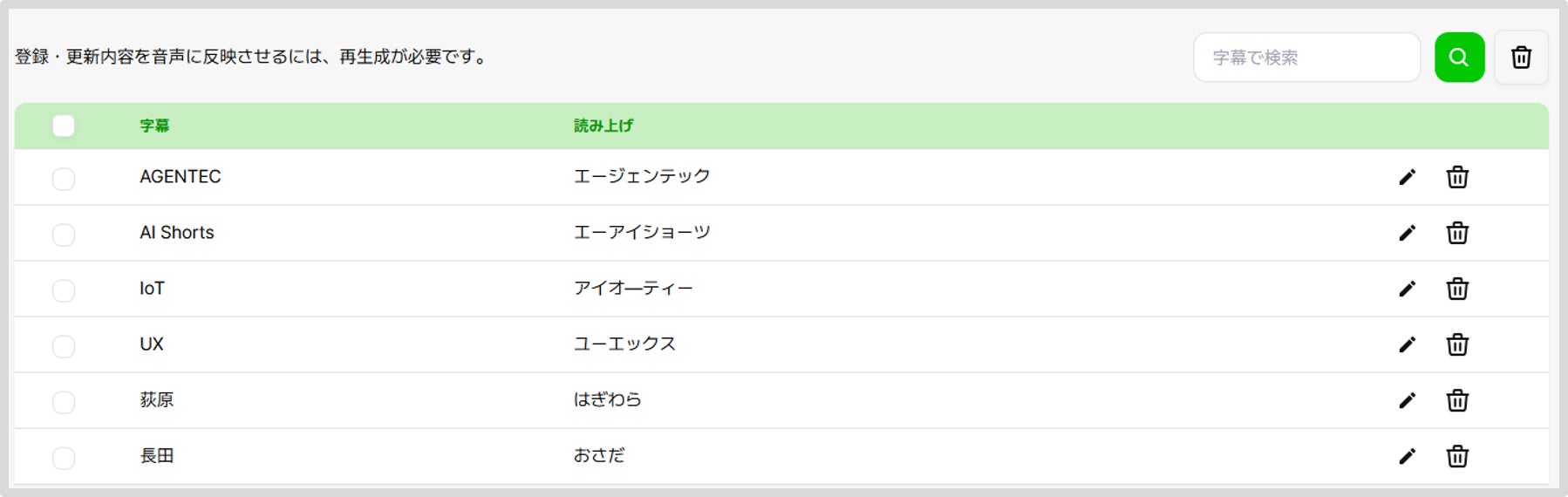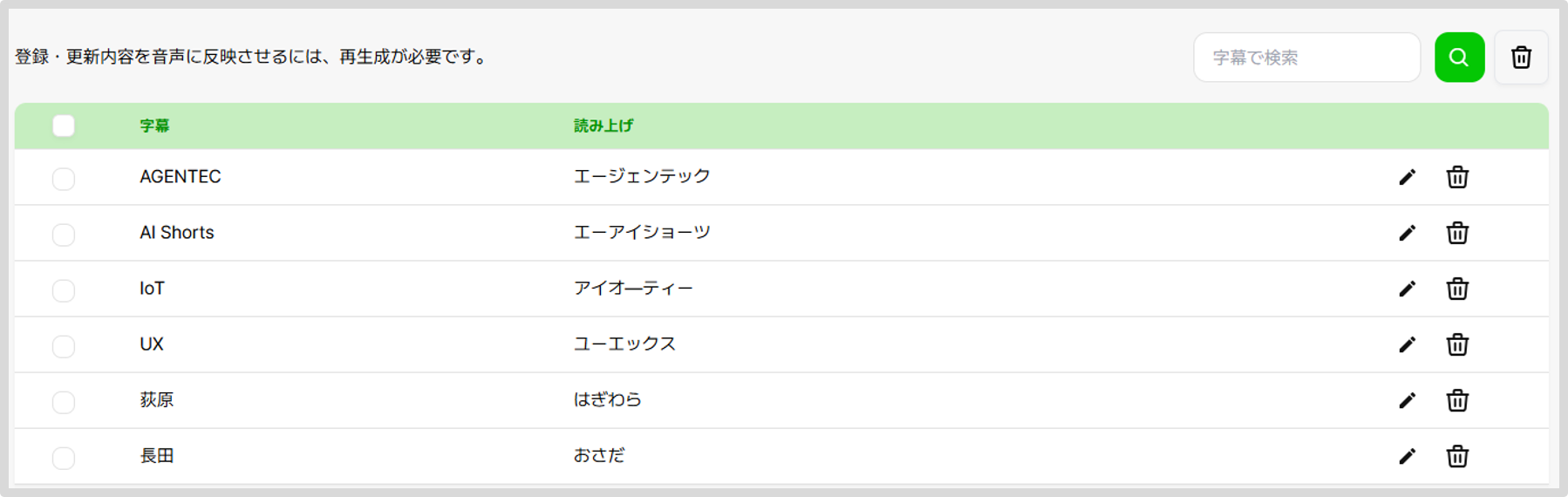 固有名詞の読み間違いを防ぎ、意図どおりの読み上げに統一できます。