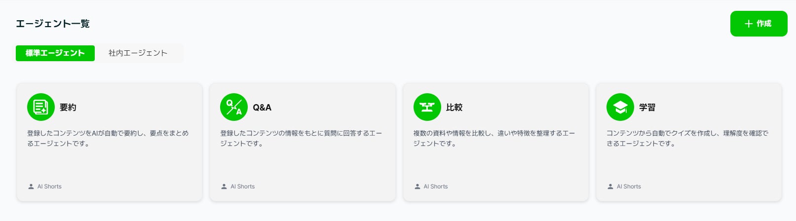 資料から「要約・Q&A・比較・学習」を行う標準エージェントに加え、