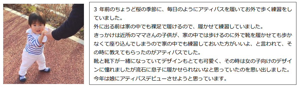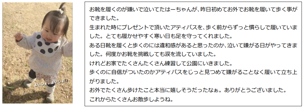 今アティパスを履いている子も、成長してアティパスを卒業した子も、アティパスとの思い出をぜひシェアしていただけませんか?