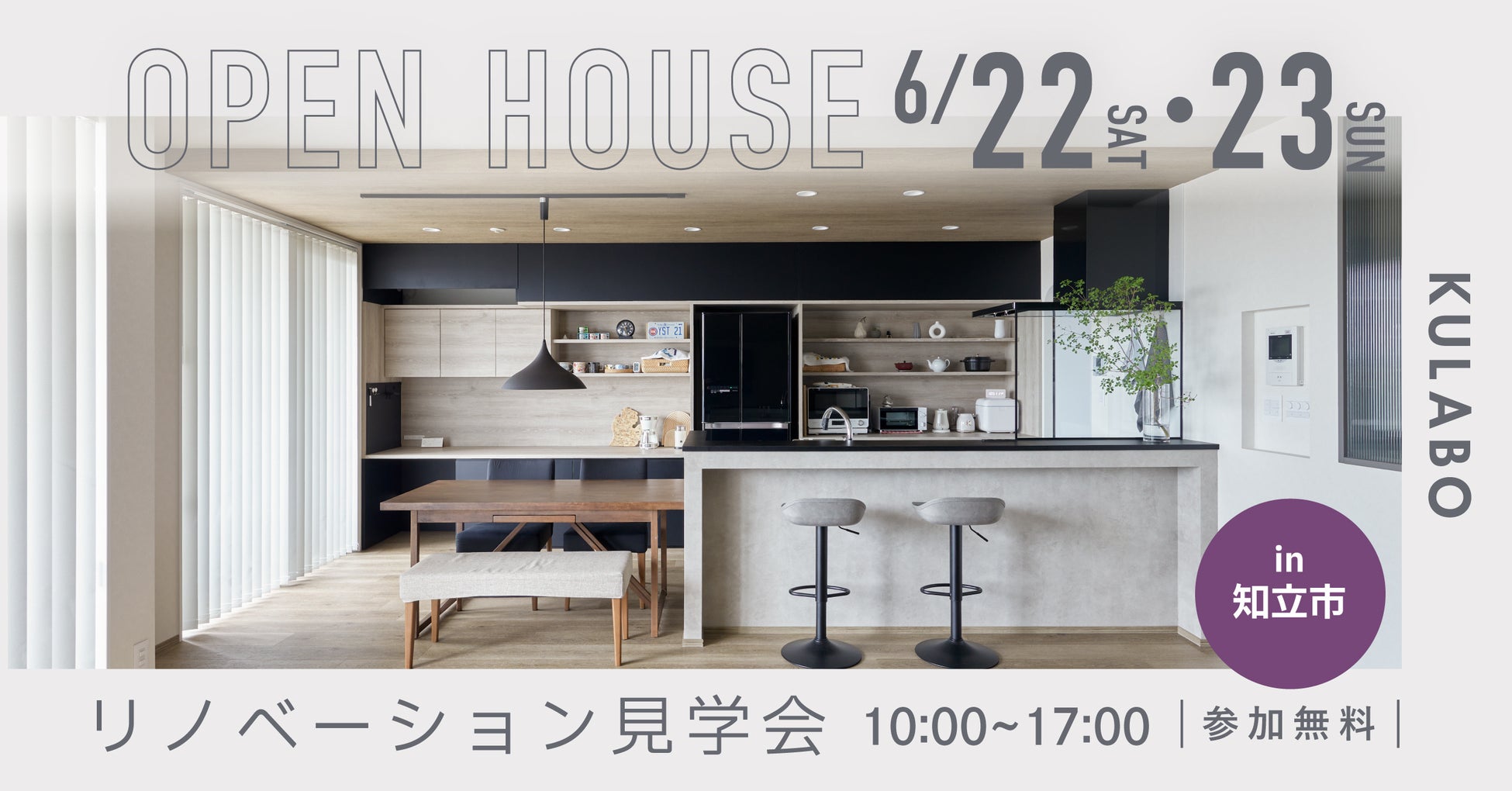 実際にKULABOでリノベーションしたオーナー様のお住まいを見学できる「リノベーション見学会」です。間取りや設計の工夫・デザインのアイデアなど、家づくりのヒント盛沢山!写真だけでは分からない素材の質感や雰囲気、リノベーションの魅力をREALにご体感ください!