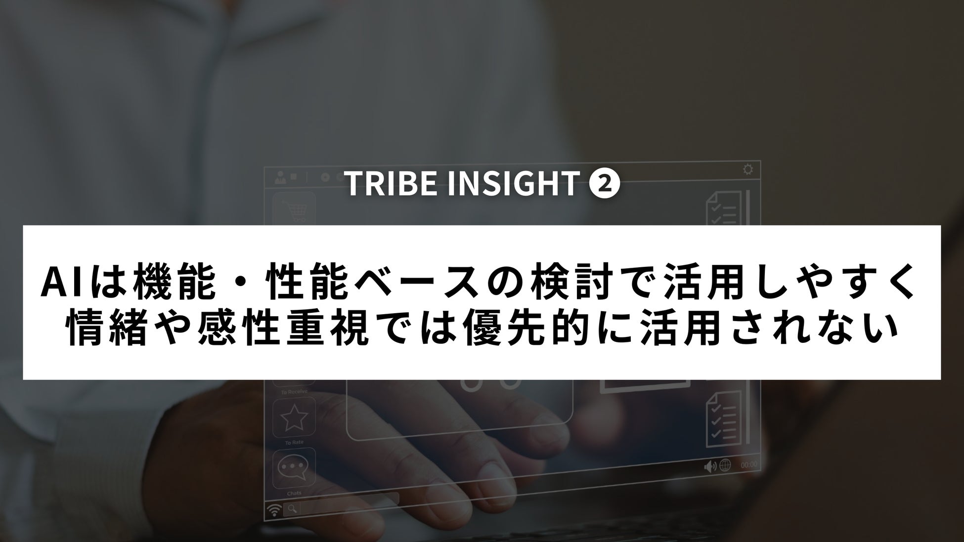 AIは機能・性能ベースの検討に強く、情緒的なテーマでは補完的に使われる