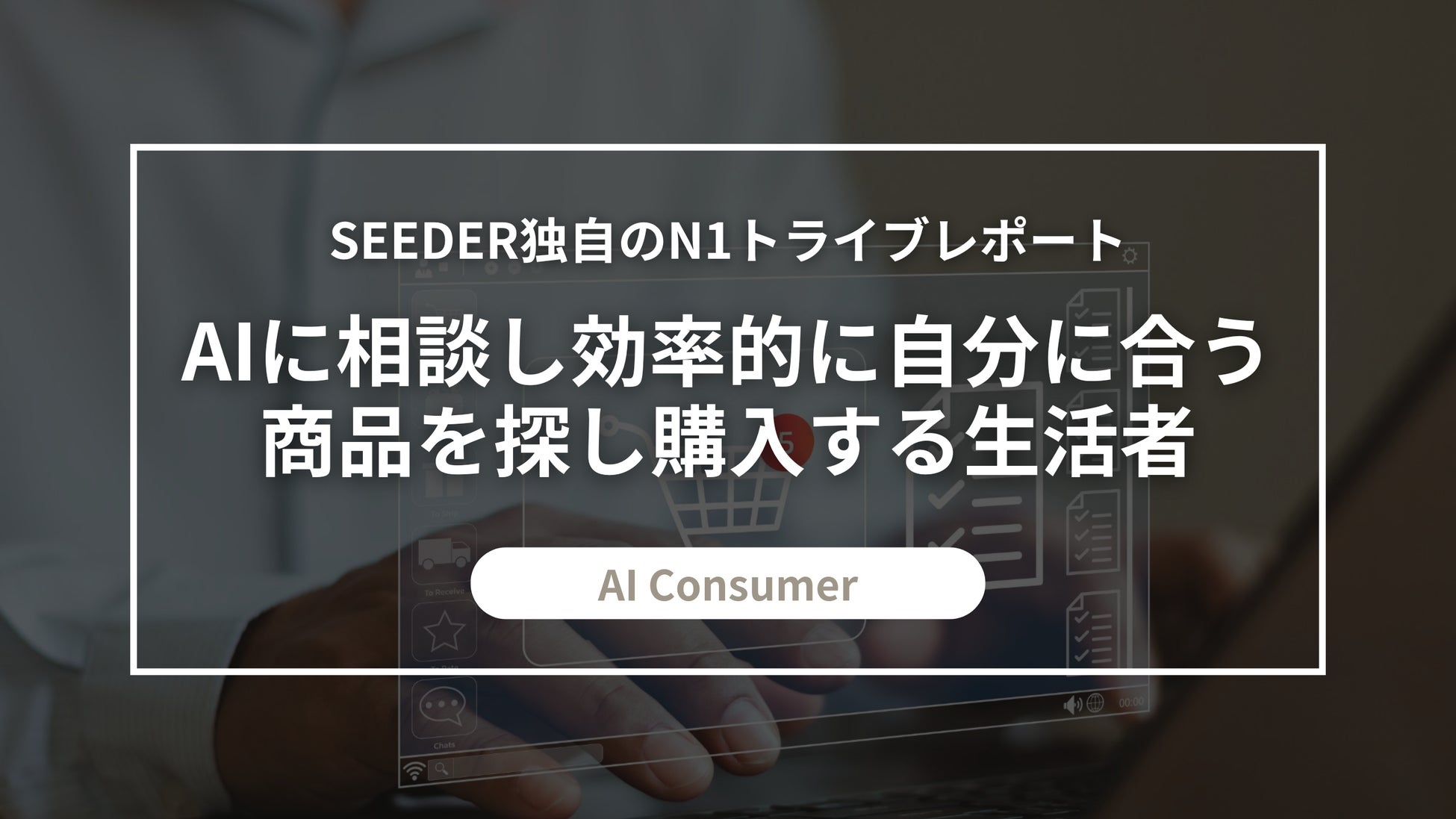 先進生活者「トライブ」の調査・分析や新商品・新規事業開発支援コンサルティングを行うSEEDER株式会社(代表取締役:村田寛治、本社:東京都港区北青山)は、生活者インサイトを探る独自調査「N1トライブレポート」において、“商品をAIに相談して選ぶ”という新たな購買行動を実践する「AI Consumer」に関するレポートを公開しました。
