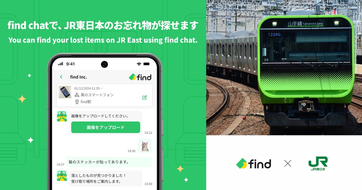 株式会社find(所在地:東京都中央区、代表取締役CEO:高島 彬、以下「find」)が提供する「落とし物クラウドfind」が、2026年4月から東日本旅客鉄道株式会社(代表取締役社長:喜㔟 陽一/以下「JR東日本」)に導入されることが決定いたしました。findの導入により、JR東日本の駅や列車内での落とし物は、チャットで24時間お問合わせいただけるようになります。