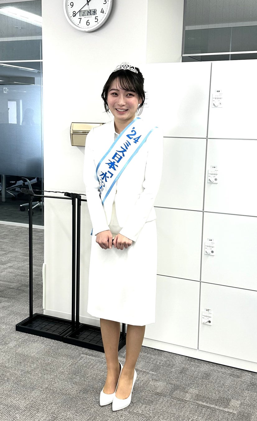 日本で最も古い歴史を持つコンテスト「ミス日本コンテスト」主催・大会委員長である和田あい氏とともに、第56回 ミス日本2024「水の天使」に選ばれた安井 南(やすい みなみ)さん(日本大学 生物資源科学部 応用生物化科学科 2年生)の表敬訪問を受けました。