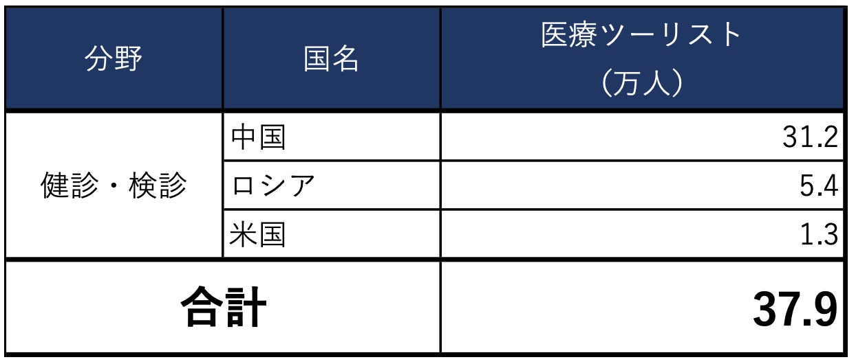 コロナ前、健診・検診を目的とした医療ツーリストは中国、ロシア、米国を合わせると年間約40万人と推測されています。