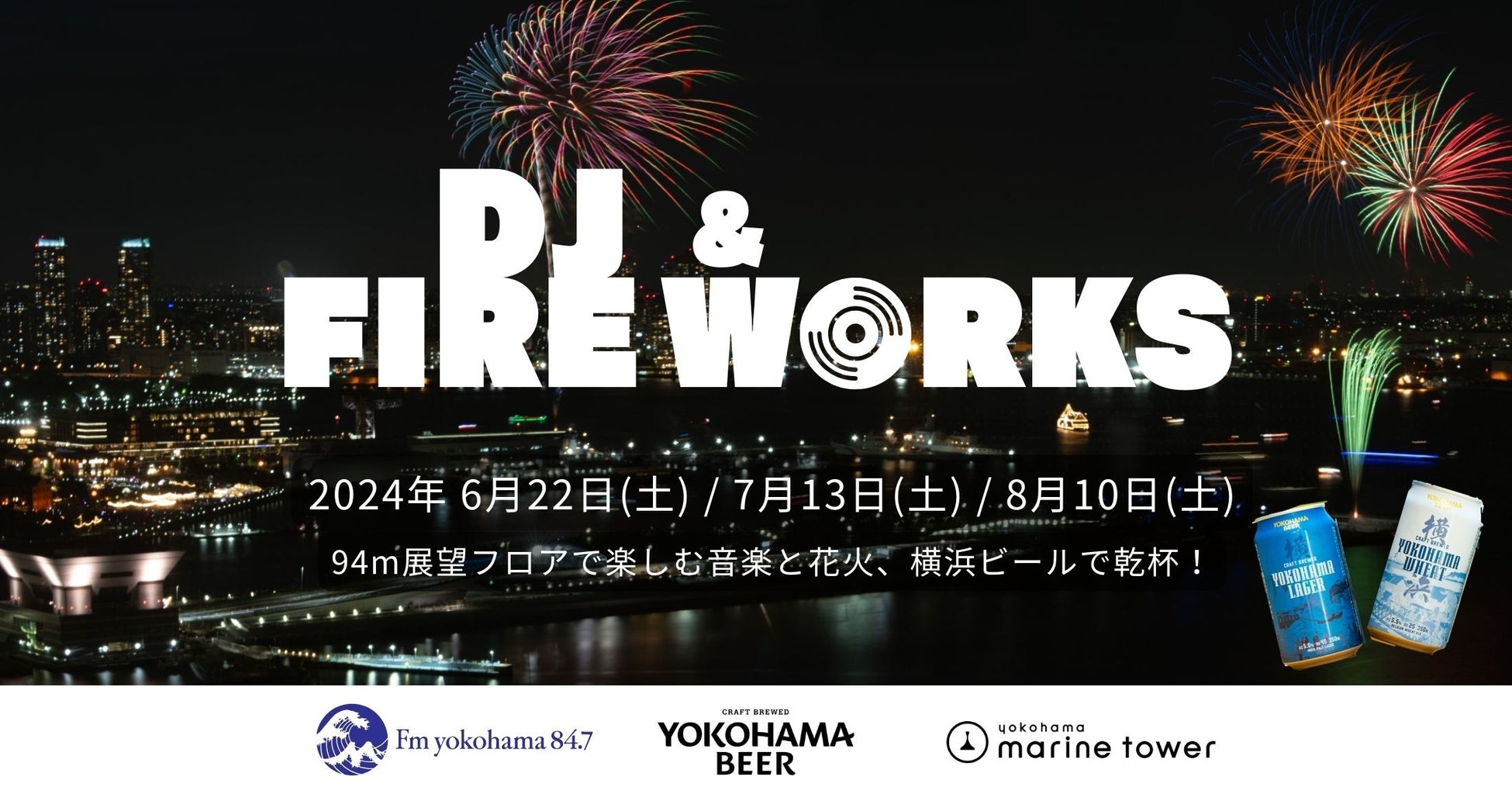 第一弾となる6月22日 (土)は、FMヨコハマで金曜日19:00から放送中の「U-MORE!」DJの鈴木裕介による音楽を聞きながら、横浜マリンタワー30F(94m)展望フロアで夜景や花火を見ながら横浜ビールを楽しめます。ぜひ、音楽×夜景×花火×横浜ビールをぜひご堪能ください。