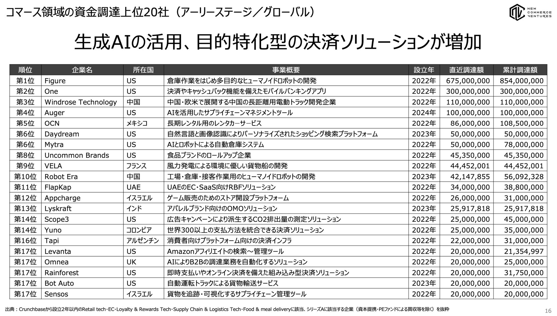 6. コマース領域の資金調達上位20社(オールステージ/グローバル)