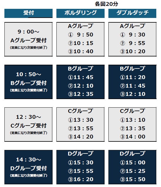 ボルダリング:各回8名程度 ダブルダッチ:各回14名程度