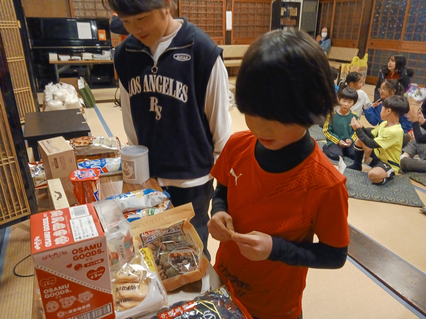 抽選会の景品として好きなお菓子1つを選ぶことができます。何をゲットしようか、子どもたちの表情は真剣そのもの。